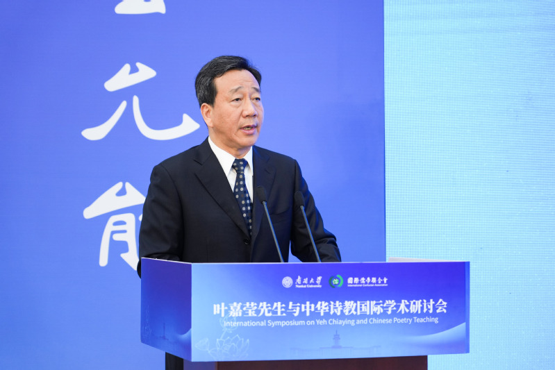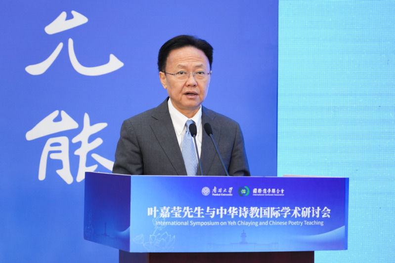 于建福指出,成立30多年来,国际儒学联合会始终以传承儒学为主干的中华文脉、促进人类文明交流互鉴及世界和平发展为己任。国际儒学联合会与南开大学的学术合作由来已久。叶嘉莹先生作为国际儒学联合会荣誉顾问,曾与儒联同心偕行,更以赤子之心躬耕诗教沃土,以毕生心血浇灌诗学之花而结出丰硕果实。中华诗学精神与教育价值,在叶嘉莹先生的育人实践中得到了完美诠释,也理应在新时代焕发出勃勃生机。希望大家以本次盛会为契机,以对中华文化的温情和敬意、对中华诗学的传承之志,深耕诗教家园,让古诗文经典真正融入精神血脉,让中华诗教在新时代绽放出更加绚丽的光彩。