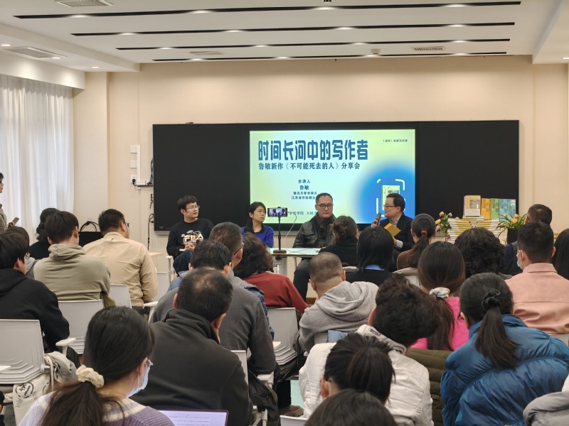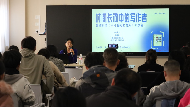 (通讯员:刘沙沙)12月9日, “时间长河中的写作者——鲁敏《不可能死去的人》分享会暨《当代》名家写作课”在南开大学文学院举办。著名作家、鲁迅文学奖得主、江苏省作家协会副主席鲁敏结合自己的创作经验和感悟,主讲了一场精彩的文学讲座,并与鲁迅文学奖得主、天津市作家协会副主席张楚,百花文艺出版社副总编、《小说月报》《科幻立方》主编徐福伟,南开大学文学院副院长卢桢就新作《不可能死去的人》展开对谈。活动由南开大学文学院与人民文学出版社旗下《当代》杂志共同主办,《当代》杂志编辑王小王主持。活动吸引了众多南开大学师生、天津作家及文学爱好者参与。